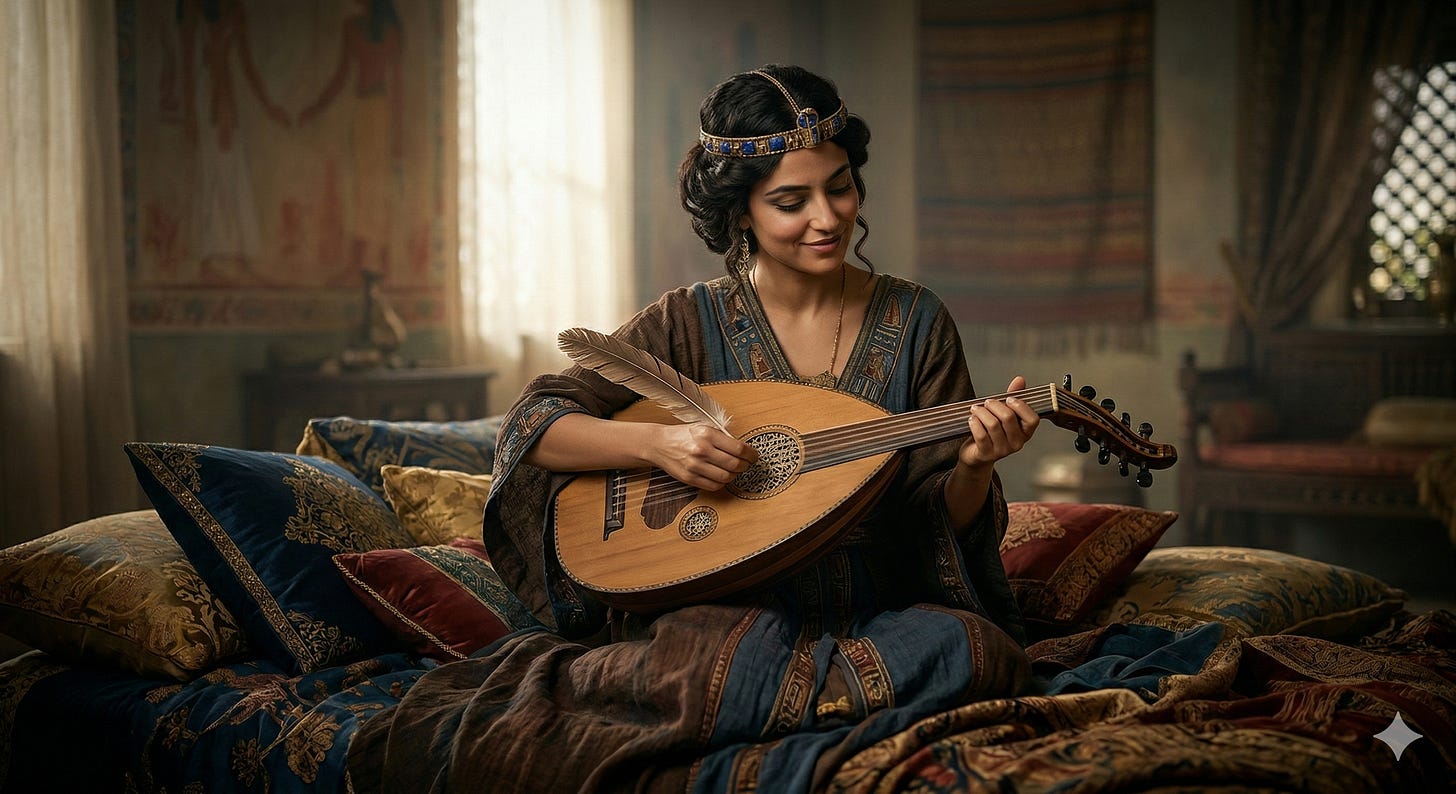 Their love bloomed in the quiet hours. The princess found a deep, intoxicating pleasure in playing the oud with that feather. Each note seemed to pull the Prince closer. They talked of poetry and stars, and when it was time for him to leave, he was so entranced by her that he began to leave things behind.